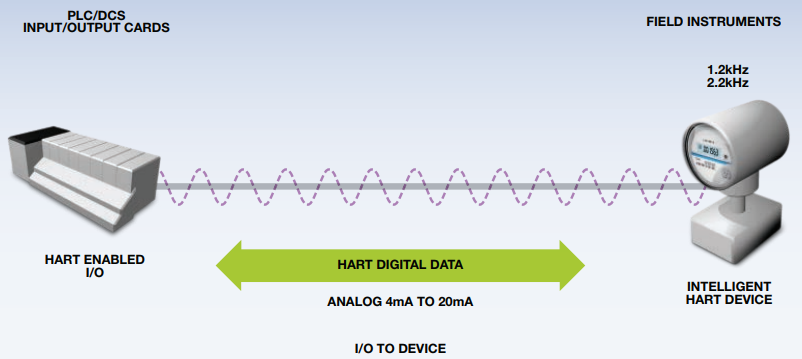이러한 HART Communication은 현장계기와 제어시스템 간 측정점 번호, 측정명, 단위와 측정값 등의 추가정보 송, 수신을 가능하게 하여 DCS, PLC, PC의 HMI에 사용된다.